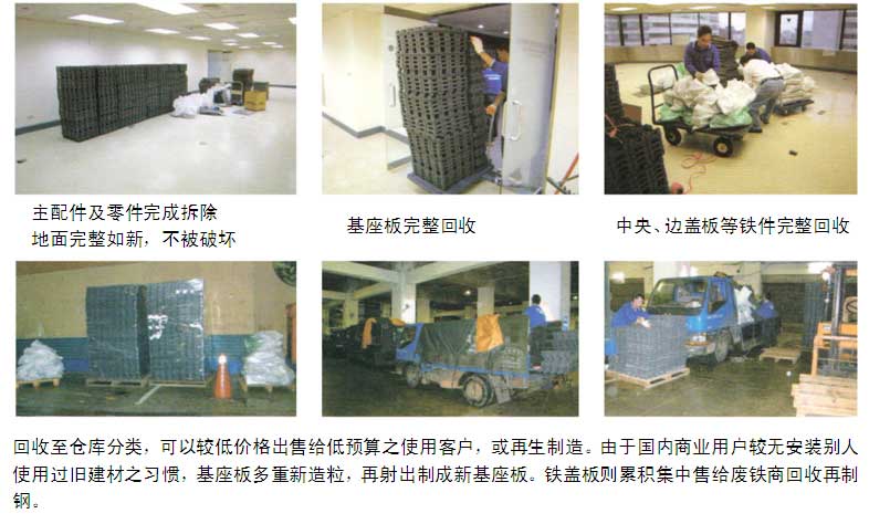 9-2:重新使用:使用本網(wǎng)絡(luò)地板之所有主元件與配件,于搬遷時(shí),95%以上可重新使用。